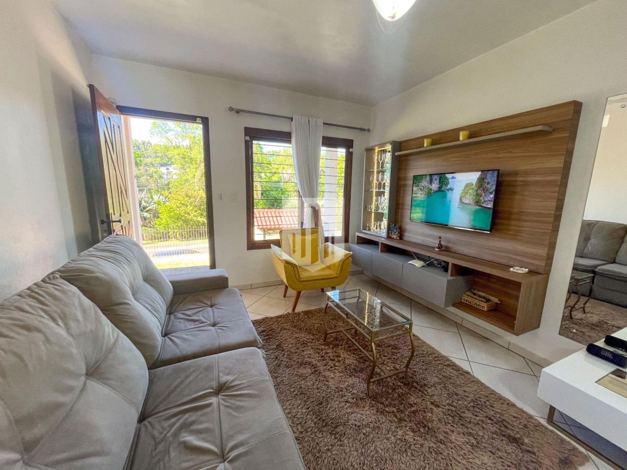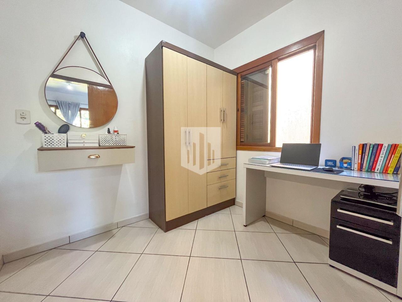 O imóvel conta com dois dormitórios, sendo um deles com espaço para closet (atualmente utilizado como escritório), banheiro social, sala de estar, jantar e cozinha integradas, área de serviço individual e, nos fundos, um espaço gourmet com churrasqueira e amplo pátio.