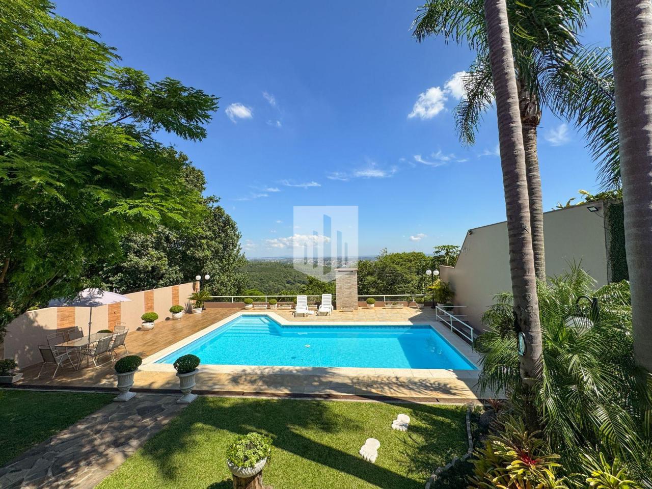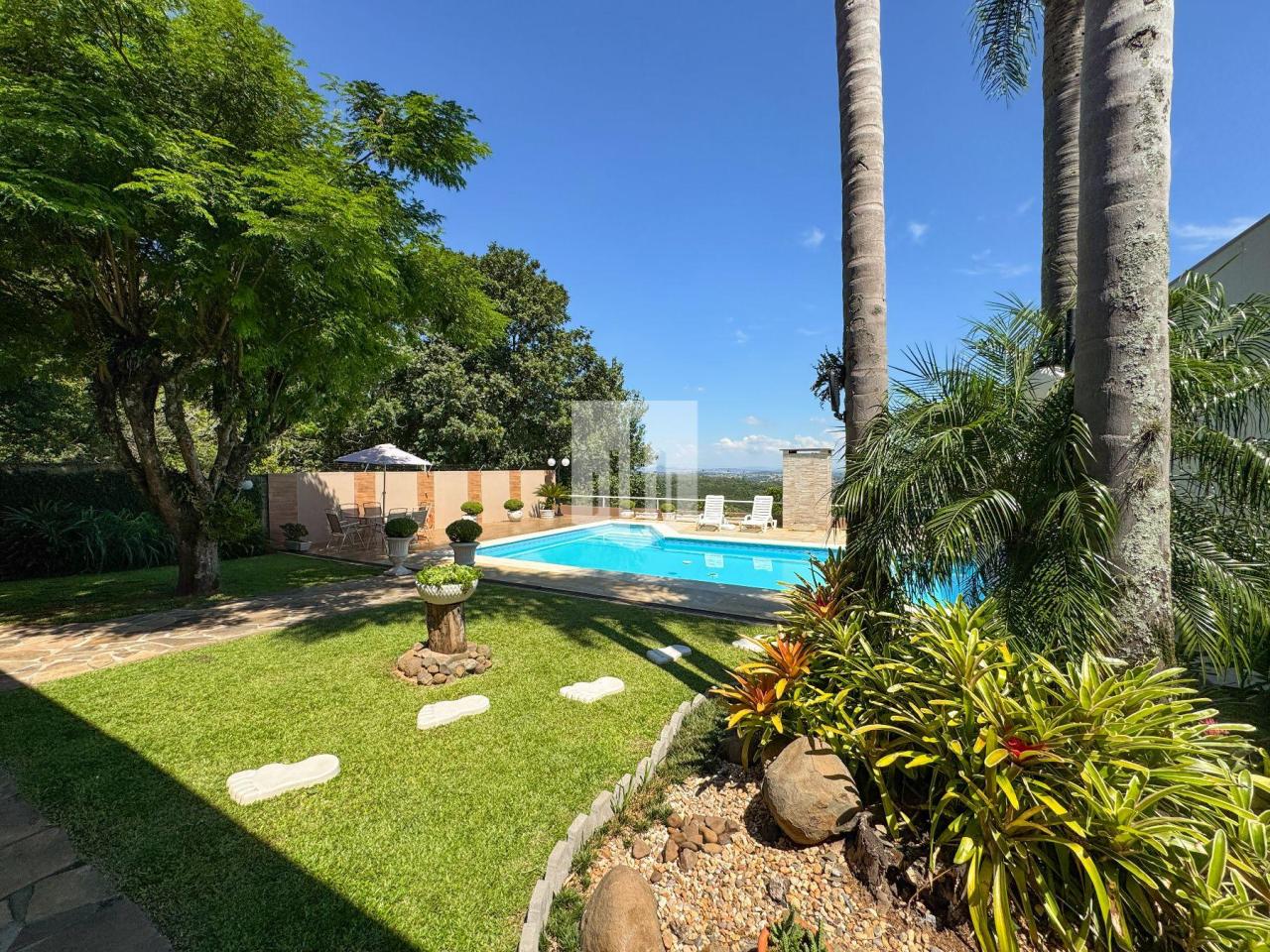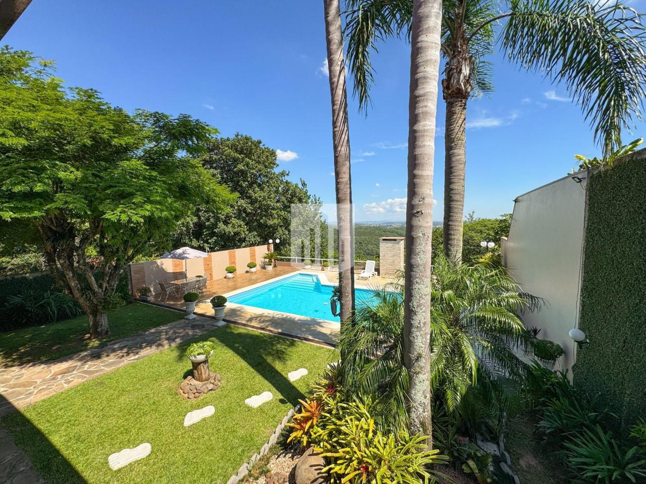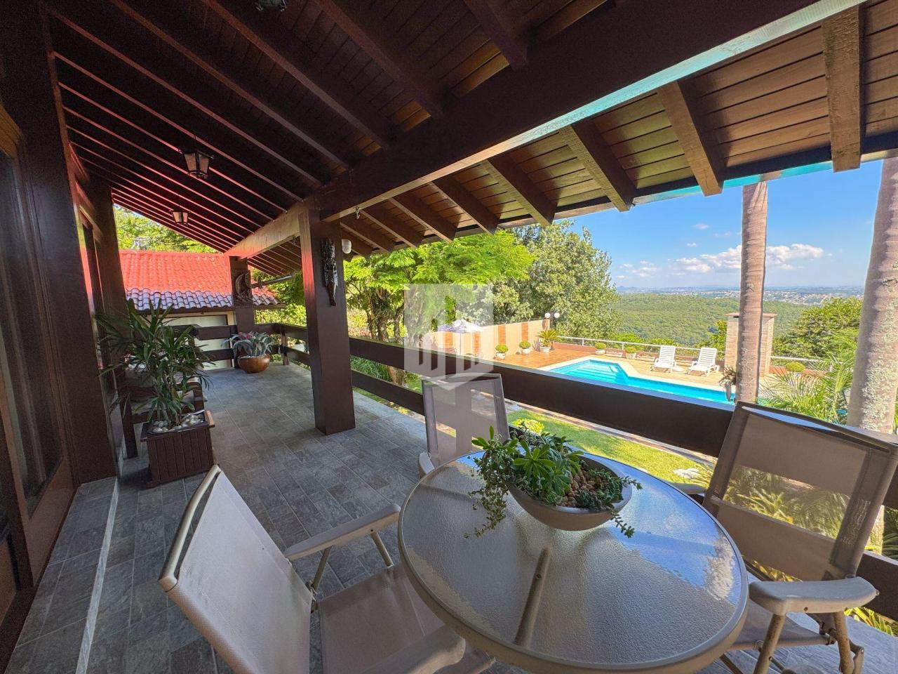 Casa de 230,00m² de área privativa, edificada em um terreno de 800,00m² de área total, que conta com três dormitórios, sendo um suíte, três banheiros, sendo um da suíte, social e lavabo, sala de estar, sala de jantar, cozinha, área de serviço, garagem para dois carros, churrasqueira, piscina com vista panorâmica, e um salão de festas com adega com área de 50,00m². Imóvel todo cercado, murado e com portão eletrônico.