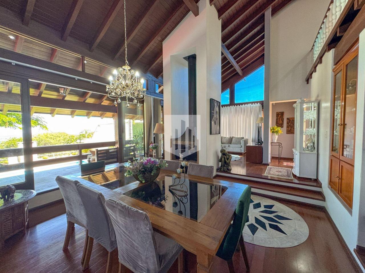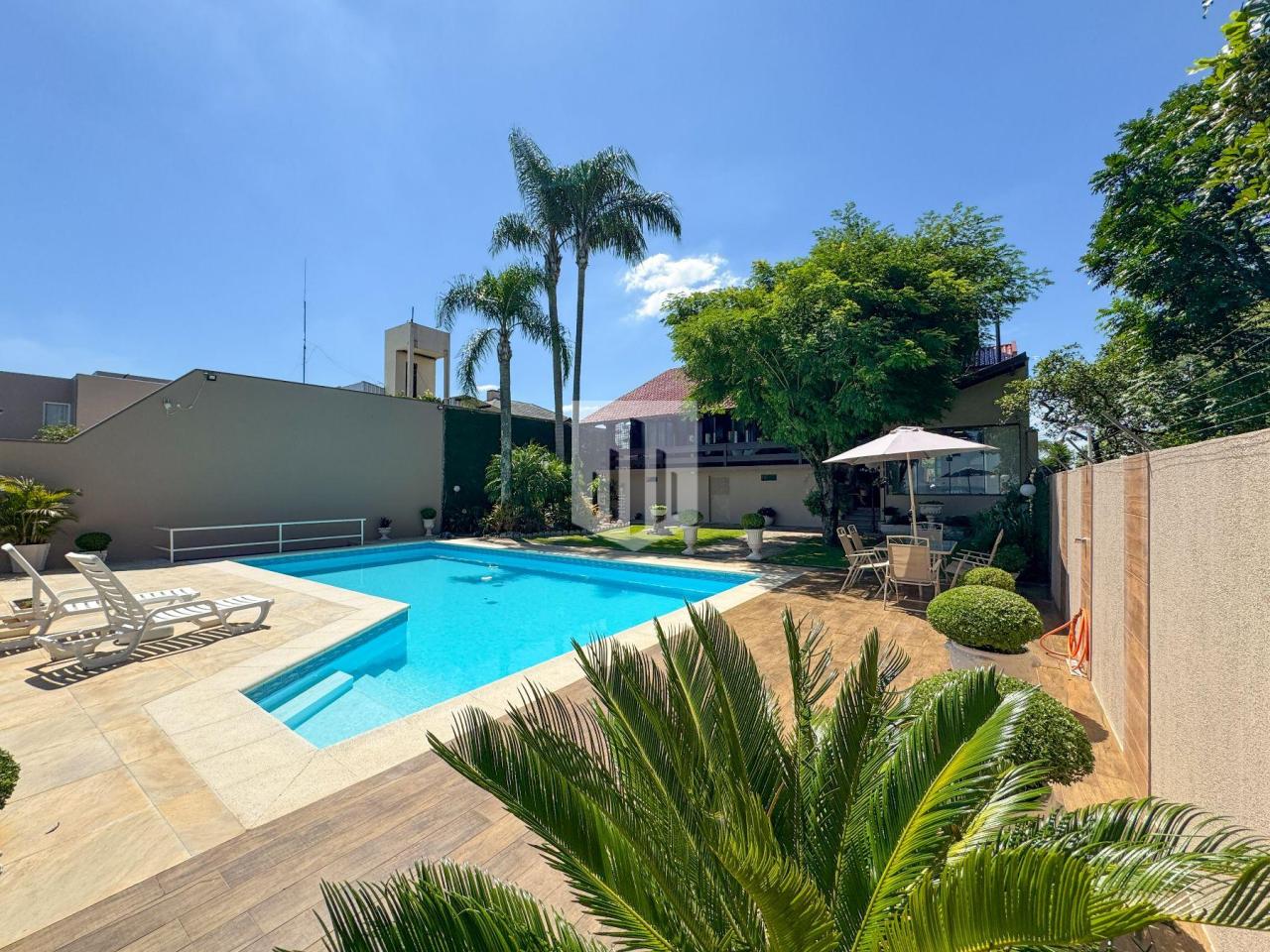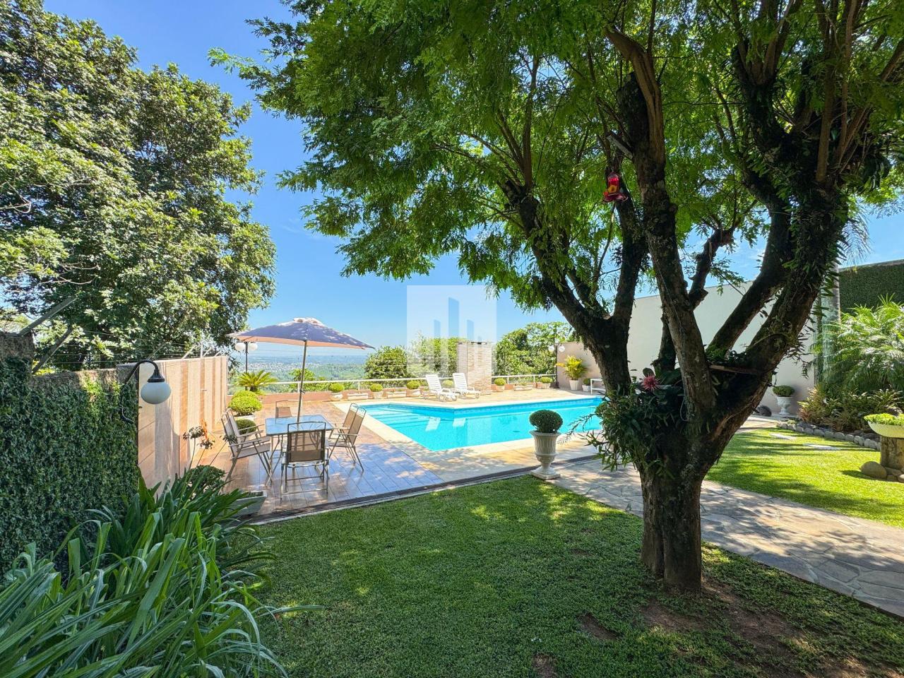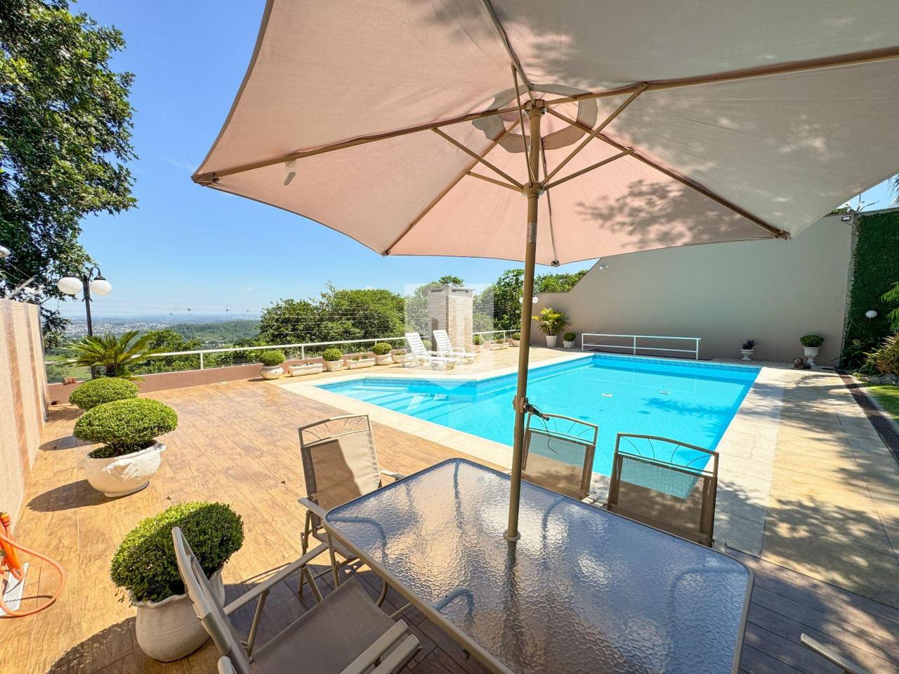Casa de 230,00m² de área privativa, edificada em um terreno de 800,00m² de área total, que conta com três dormitórios, sendo um suíte, três banheiros, sendo um da suíte, social e lavabo, sala de estar, sala de jantar, cozinha, área de serviço, garagem para dois carros, churrasqueira, piscina com vista panorâmica, e um salão de festas com adega com área de 50,00m². Imóvel todo cercado, murado e com portão eletrônico.