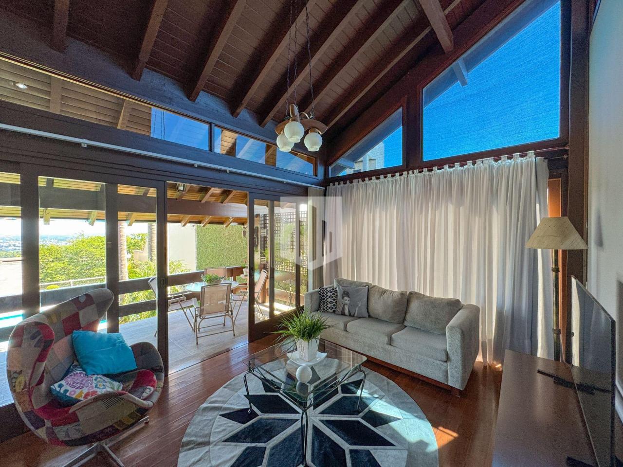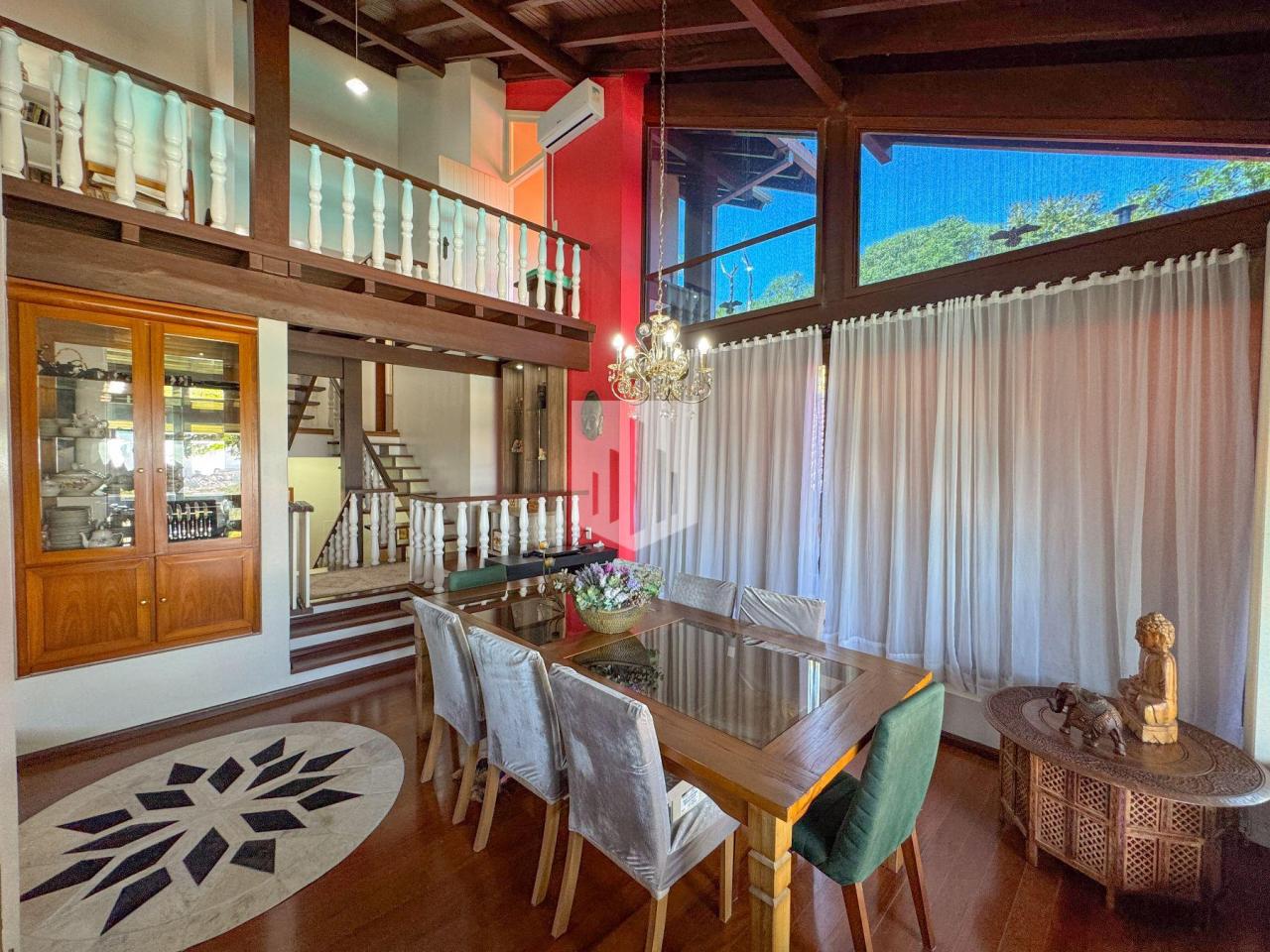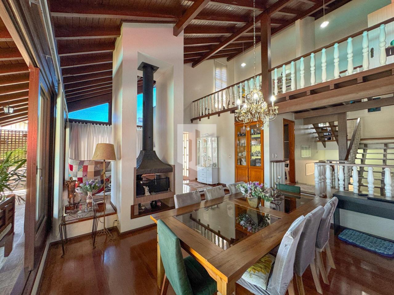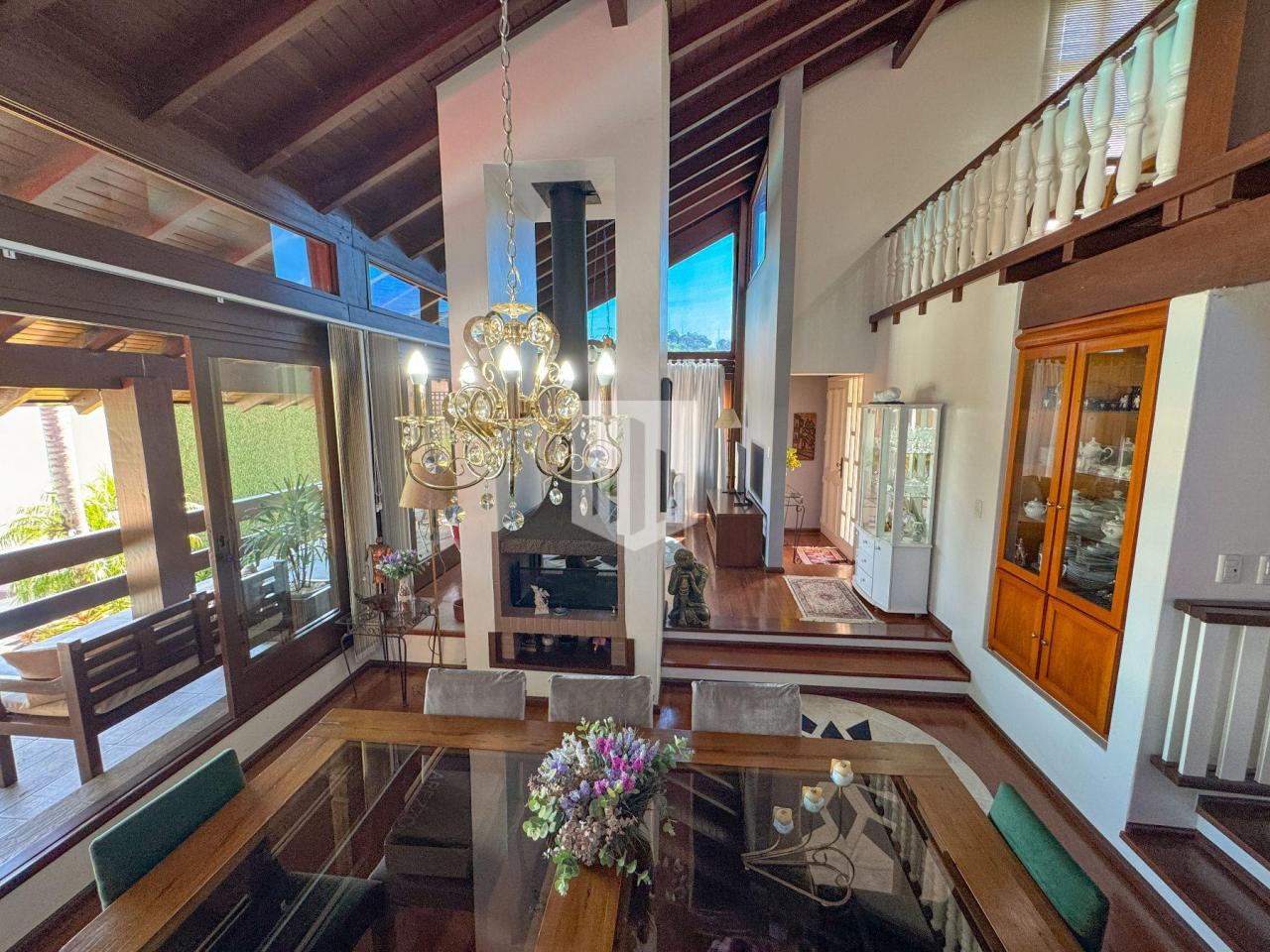 Casa de 230,00m² de área privativa, edificada em um terreno de 800,00m² de área total, que conta com três dormitórios, sendo um suíte, três banheiros, sendo um da suíte, social e lavabo, sala de estar, sala de jantar, cozinha, área de serviço, garagem para dois carros, churrasqueira, piscina com vista panorâmica, e um salão de festas com adega com área de 50,00m². Imóvel todo cercado, murado e com portão eletrônico.