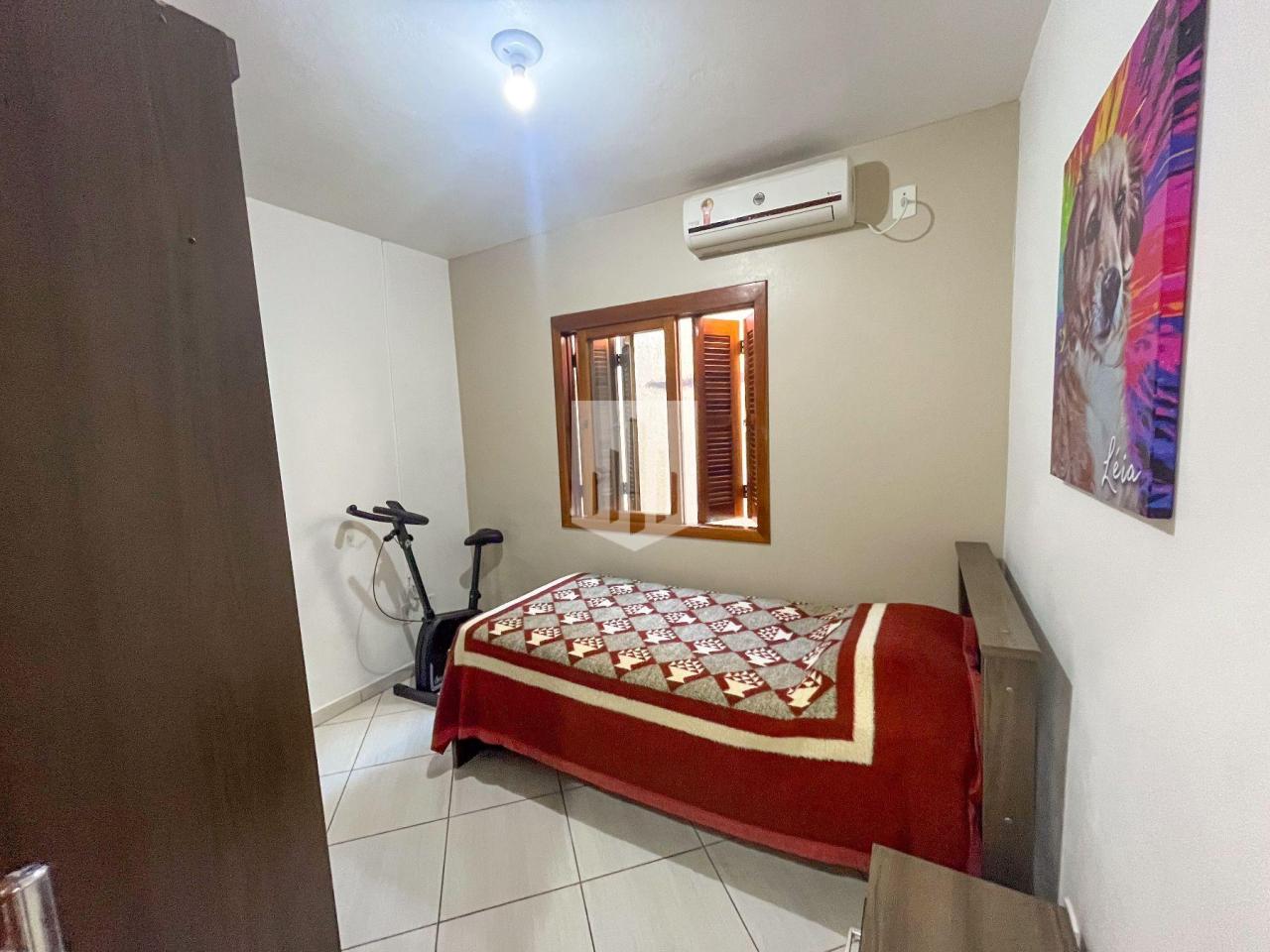 O imóvel conta com dois dormitórios, sendo um deles com espaço para closet (atualmente utilizado como escritório), banheiro social, sala de estar, jantar e cozinha integradas, área de serviço individual e, nos fundos, um espaço gourmet com churrasqueira e amplo pátio.