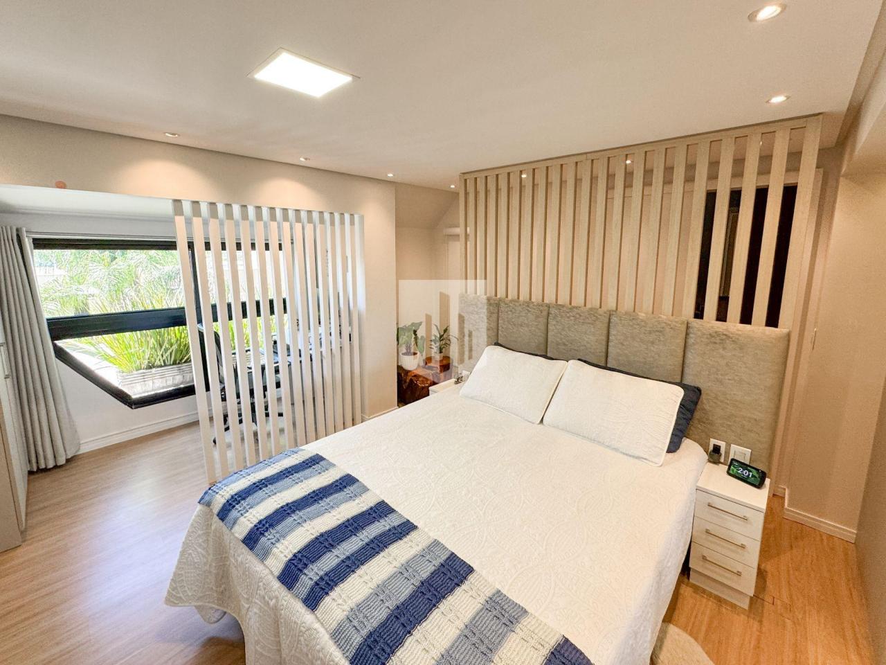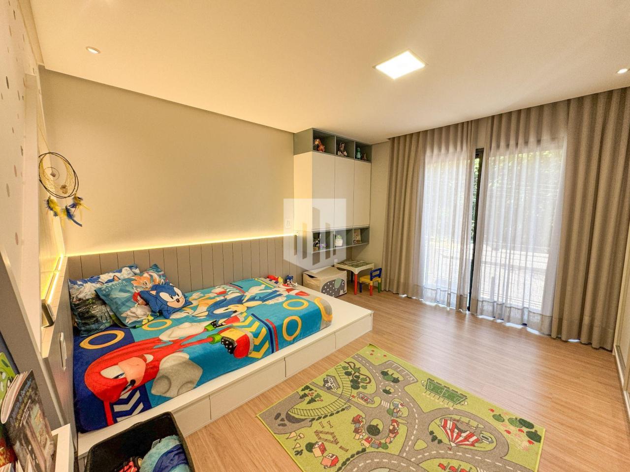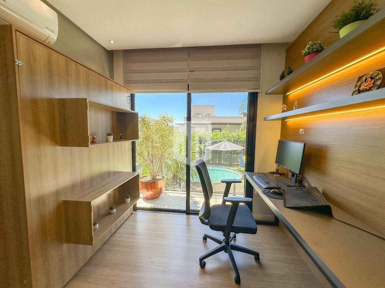 No andar térreo, há ainda uma suíte atualmente utilizada como escritório, com sacada voltada para o norte e banheira de hidromassagem. No segundo piso, fica a suíte infantil, totalmente mobiliada e acompanhada de um pequeno depósito de apoio. Já o terceiro piso abriga a suíte do casal, com móveis sob medida, closet, banheiro com 2 pias e 2 espelhos, pequeno espaço de home office. Além de contar mais um depósito adicional.