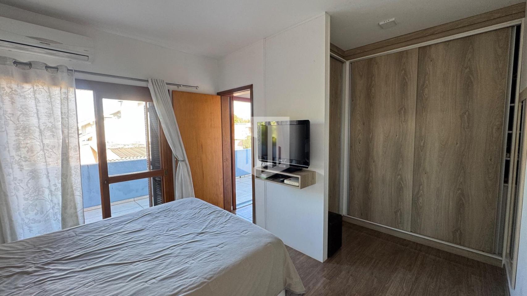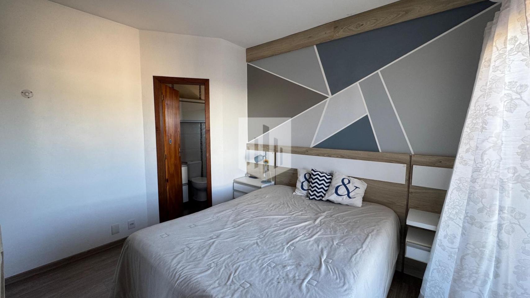No andar superior, a ampla suíte máster com closet e sacada com vista panorâmica proporciona um espaço exclusivo de descanso e contemplação.